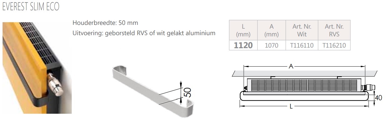 Handdoekbeugel SLIM 1120mm RVS (v. radiatorbreedte 1070mm) Henrad
