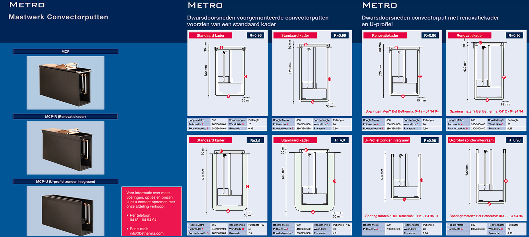 Convectorput Metro 2060x420mm beuk natuur R2,5 links 2843W Betherma