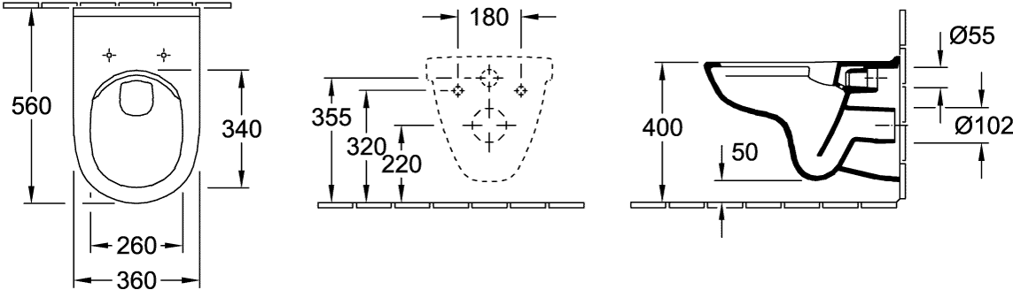 - Hartmaat bevestiging wandcloset: 180 mm