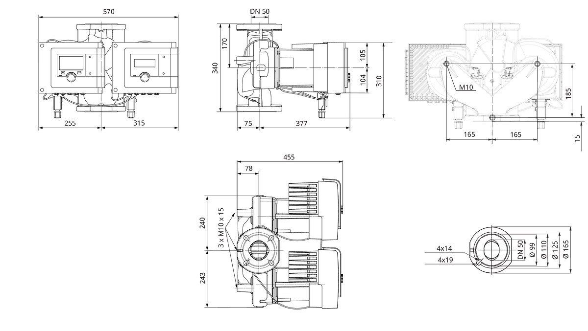 Circulatiepomp / dubbelpomp Stratos MAXO-D 50/0,5-16 PN6/10 Wilo