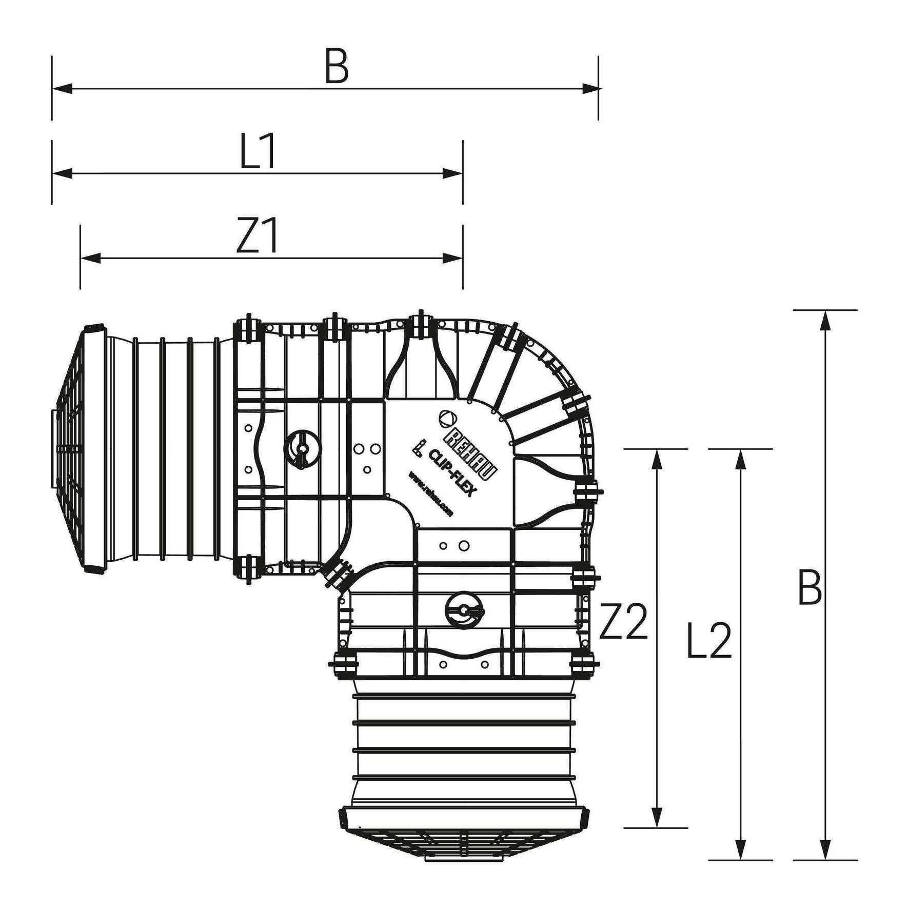 CLIP-FLEX L-moffenset (knie) groot tbv terreinleiding 90mm tot 250mm REHAU