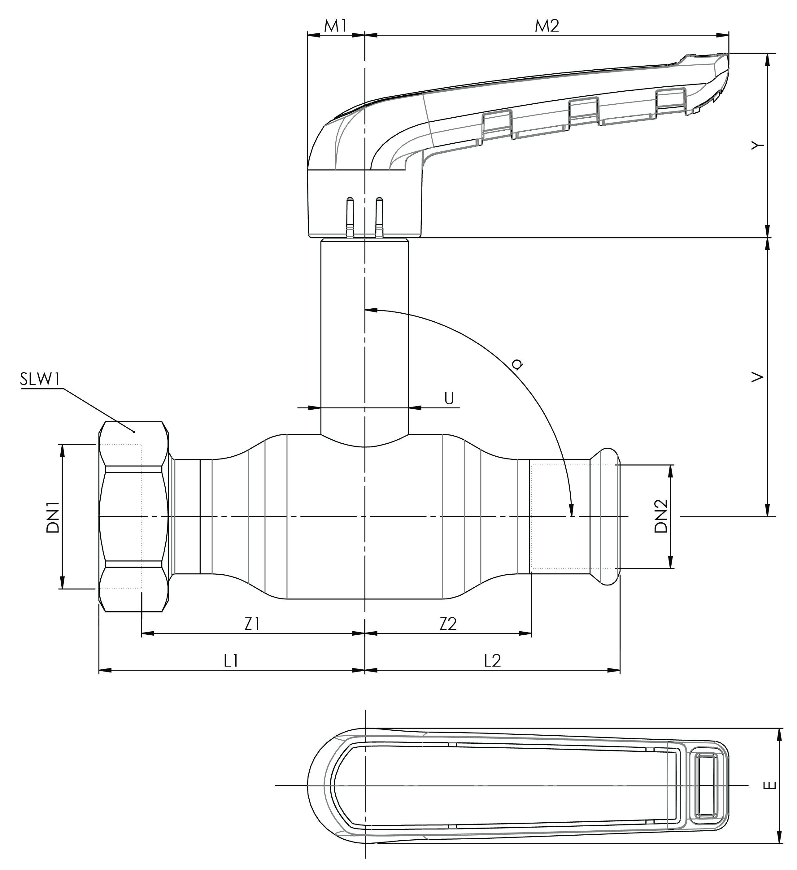 - Materiaal kogelafdichting: Polytetrafluorethyleen (PTFE)
