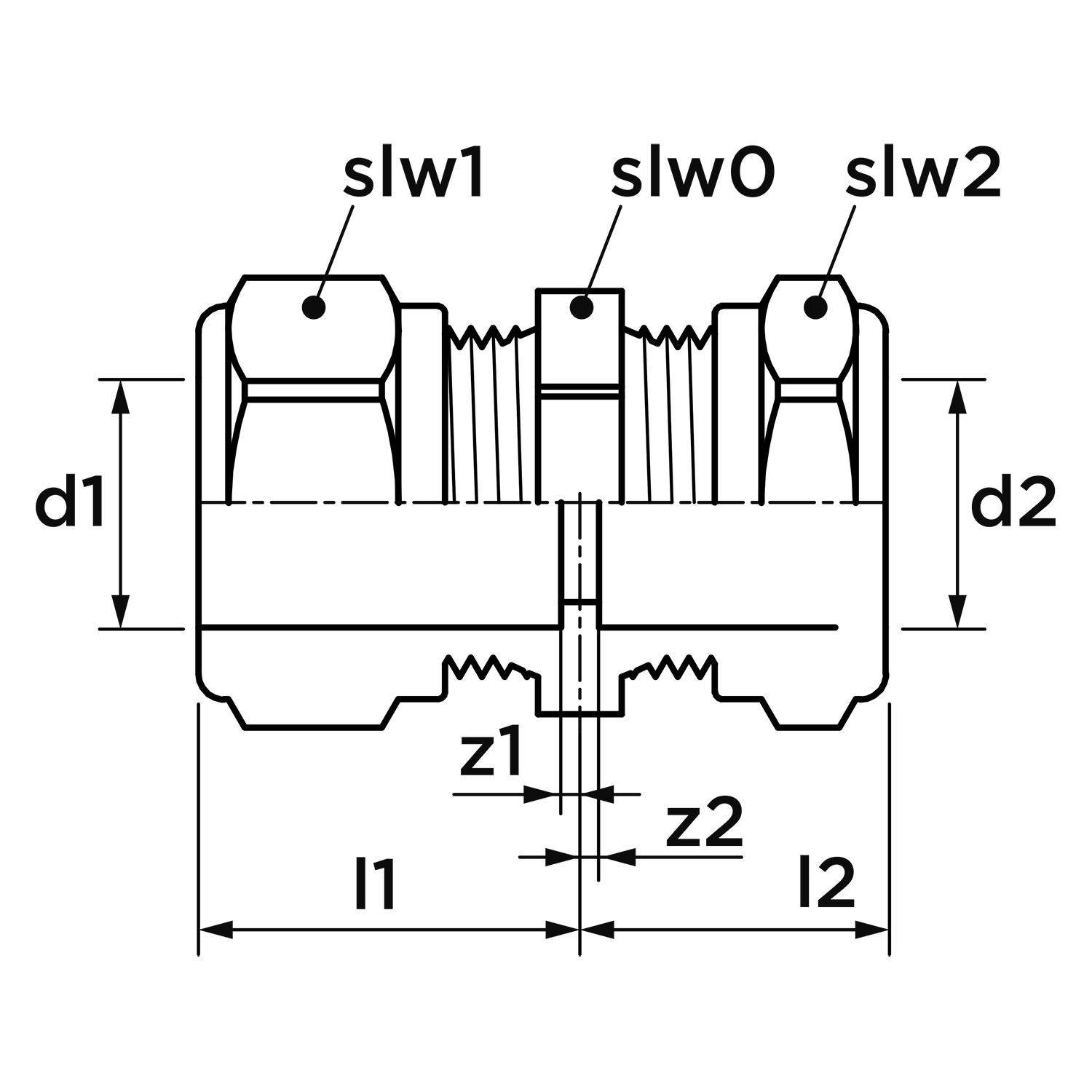• Werkende lengte aansluiting 2: 1 mm