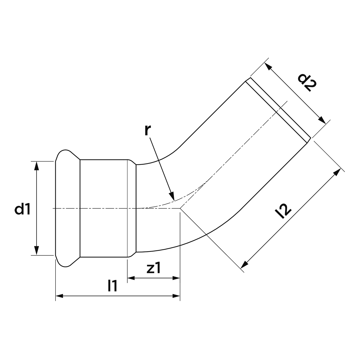 Insteekbocht 45° XPress CU 15x spie 15mm 7040 VSH