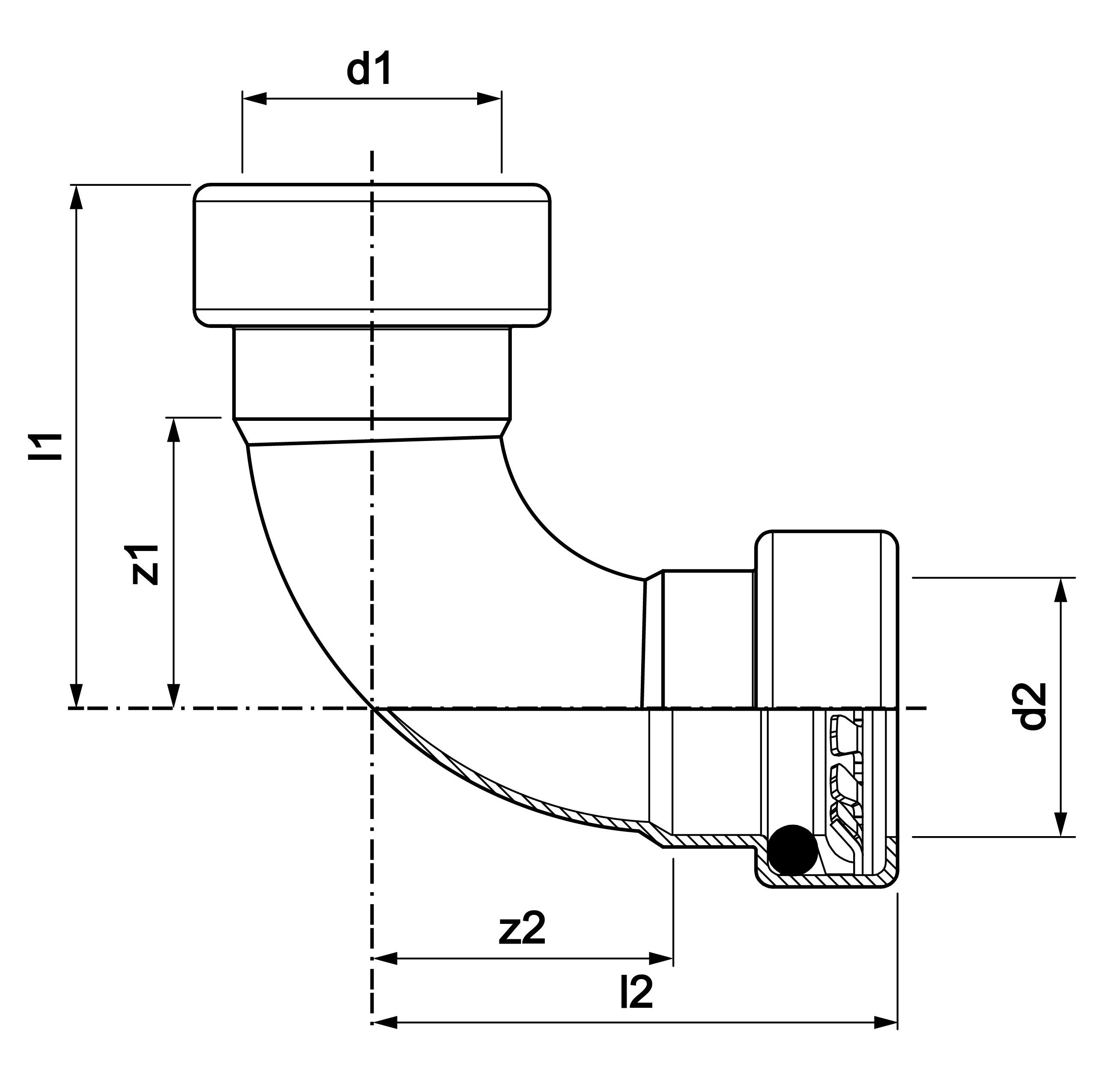 Bochtkoppeling 90° Tectite-S koper push 15x15mm VSH