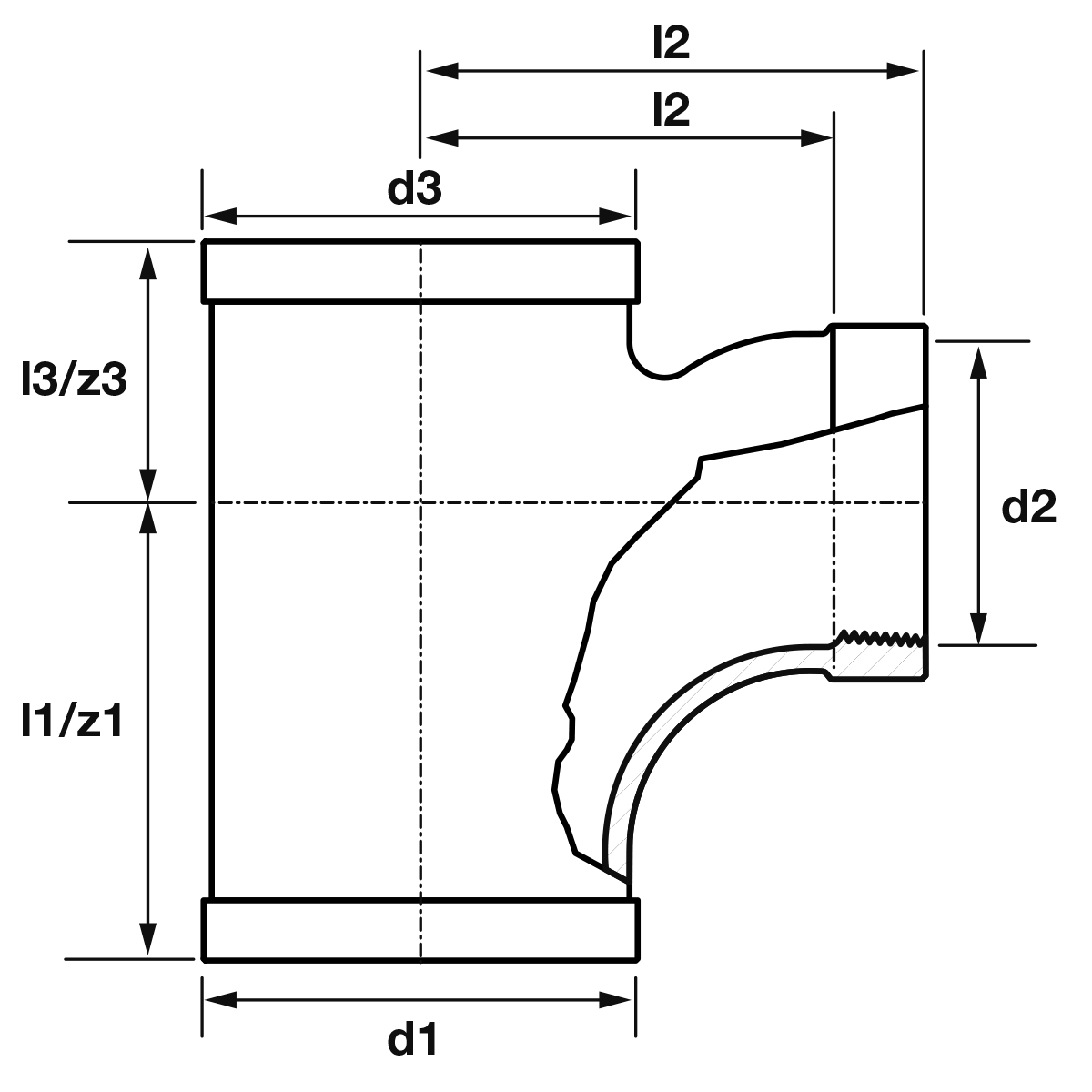 Shurjoint groef T-stuk MFM 88,9xRp2 1/2x88,9mm verzinkt VSH