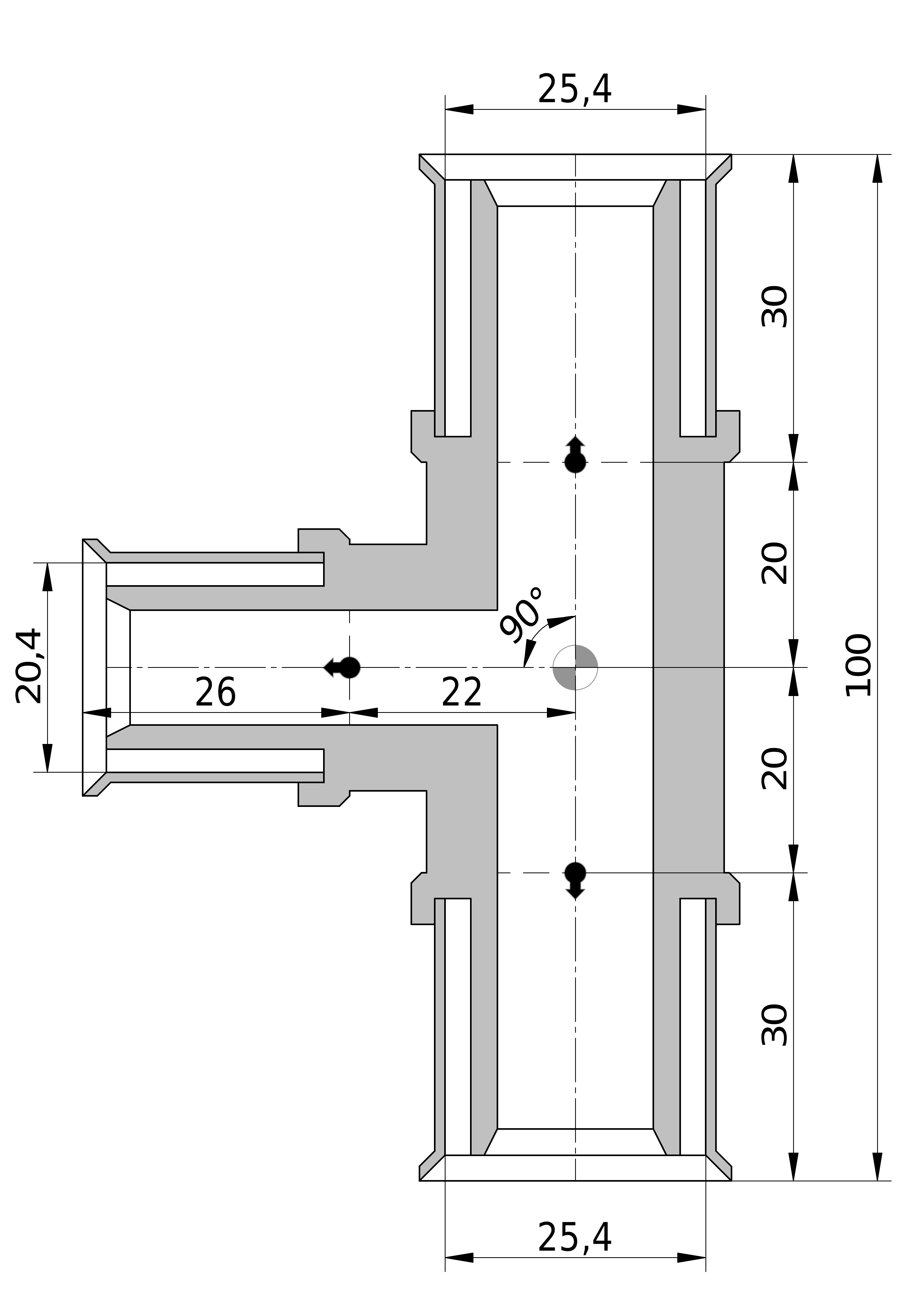 - Zeta waarde aftakking mengstroming volgens DVGW W 575: 0