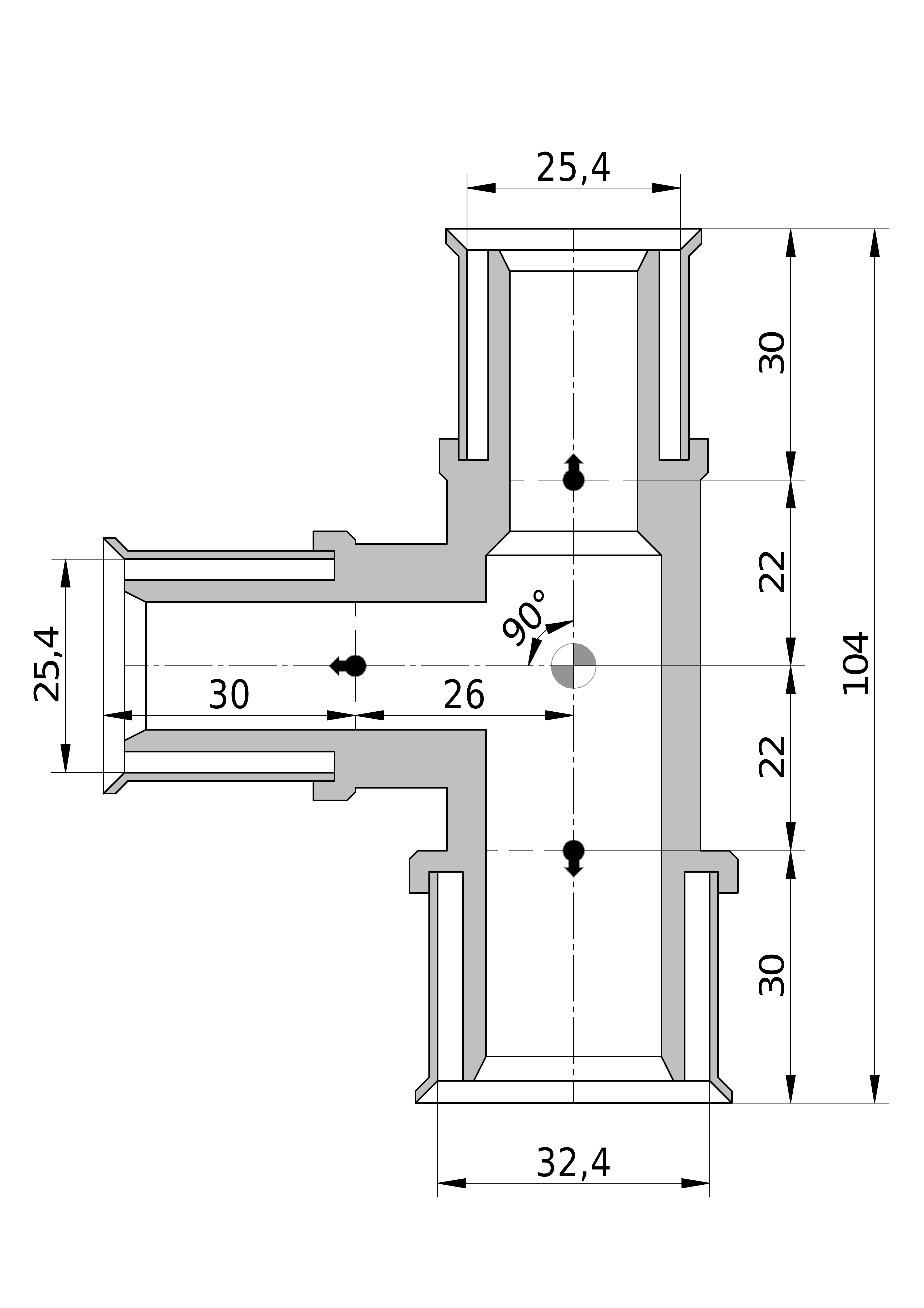 - Uitwendige buisdiameter aansluiting 2: 25 mm