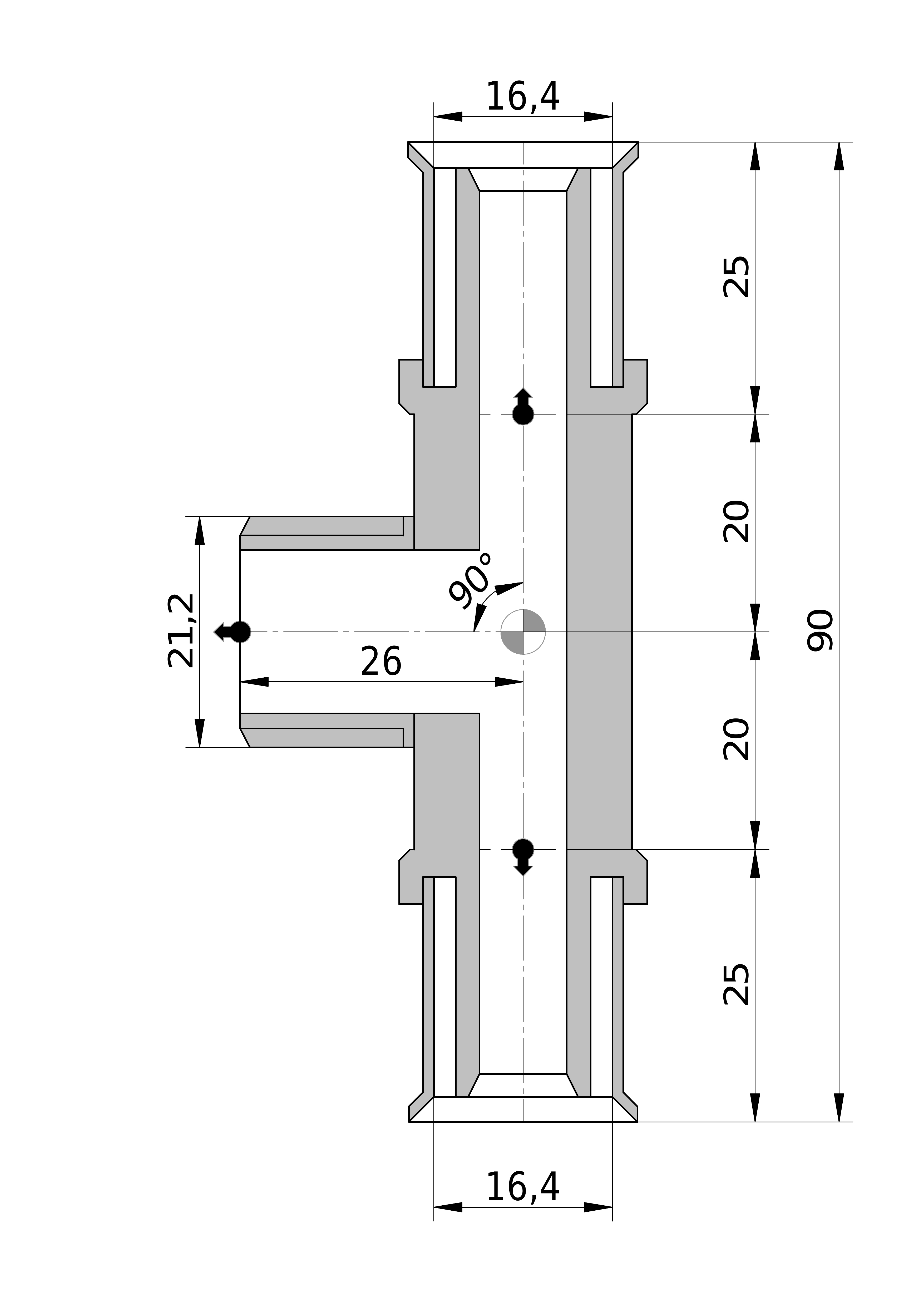 - Lengte aansluiting 1: 25,5 mm