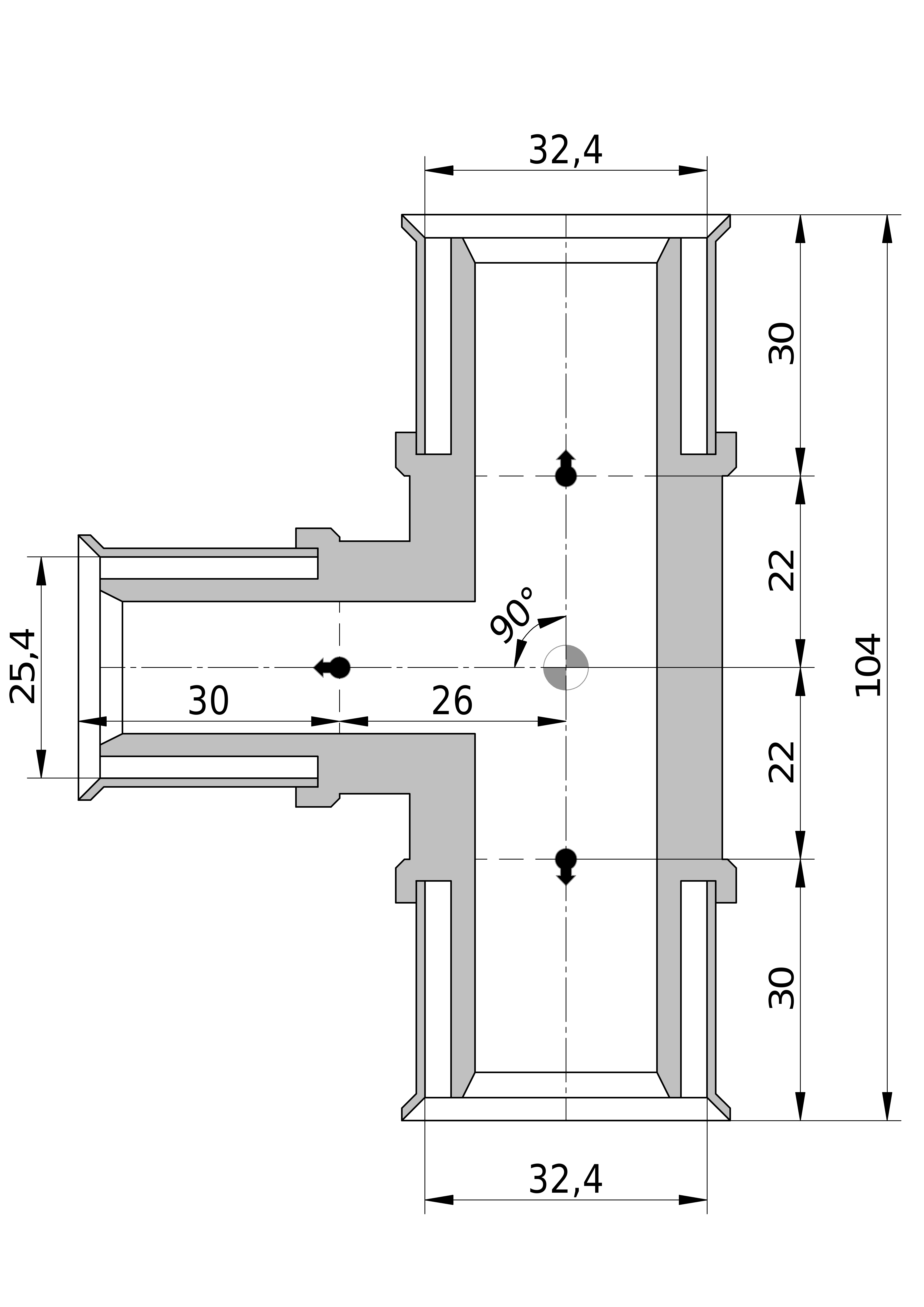 • Uitwendige buisdiameter aansluiting 3: 32 mm