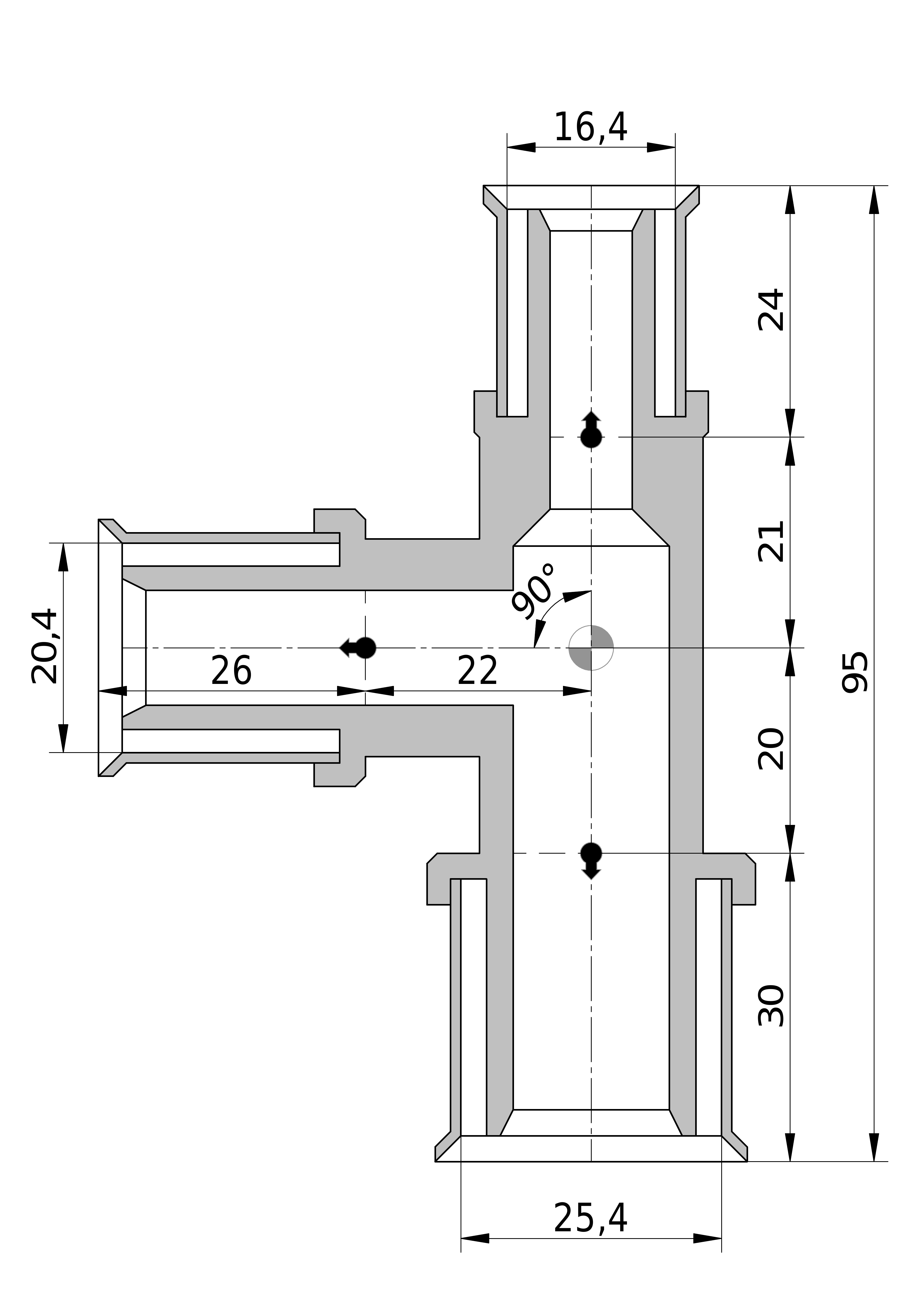 • Zeta waarde aftakking mengstroming volgens DVGW W 575: 0