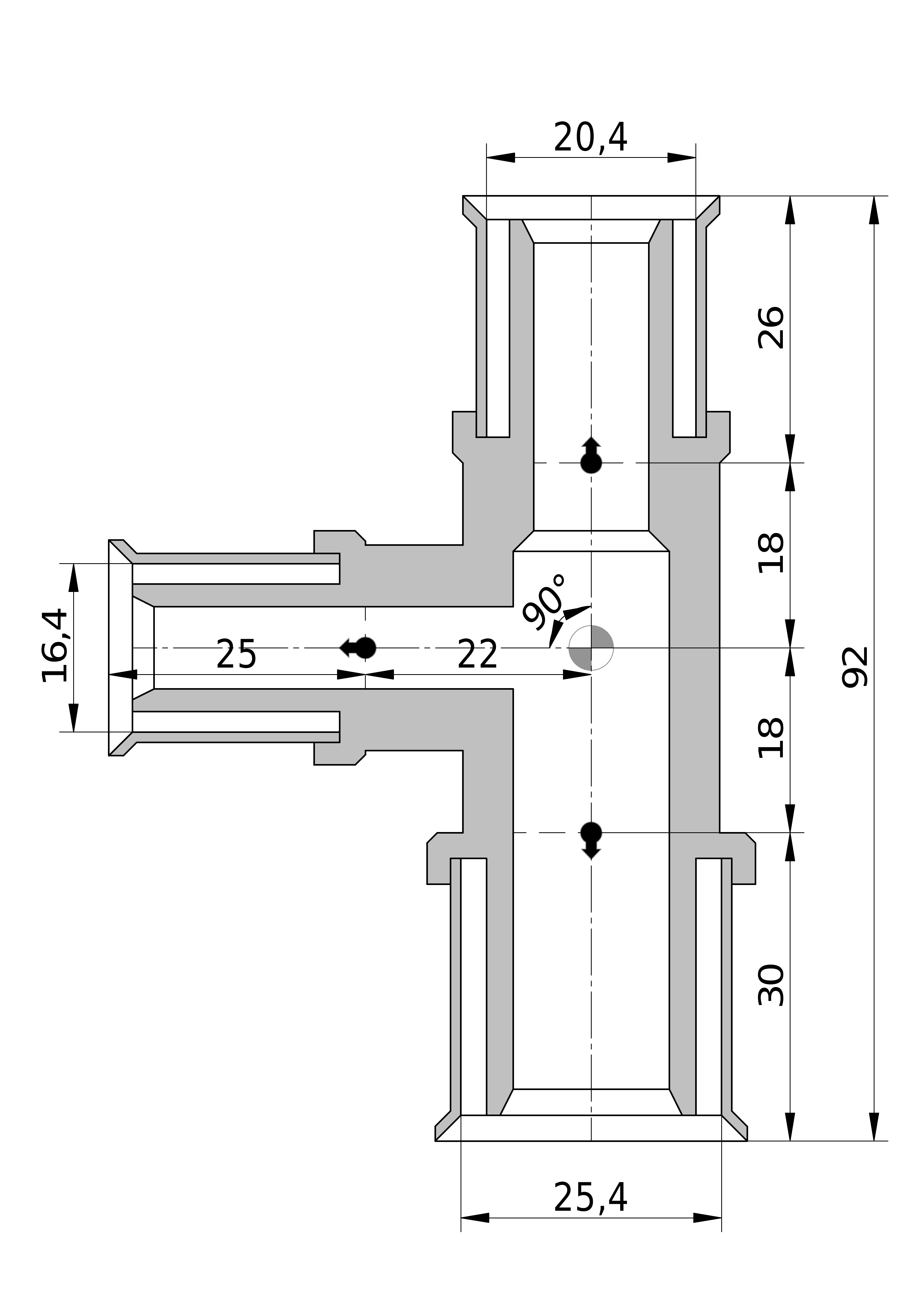 - Lengte aansluiting 2: 25,5 mm