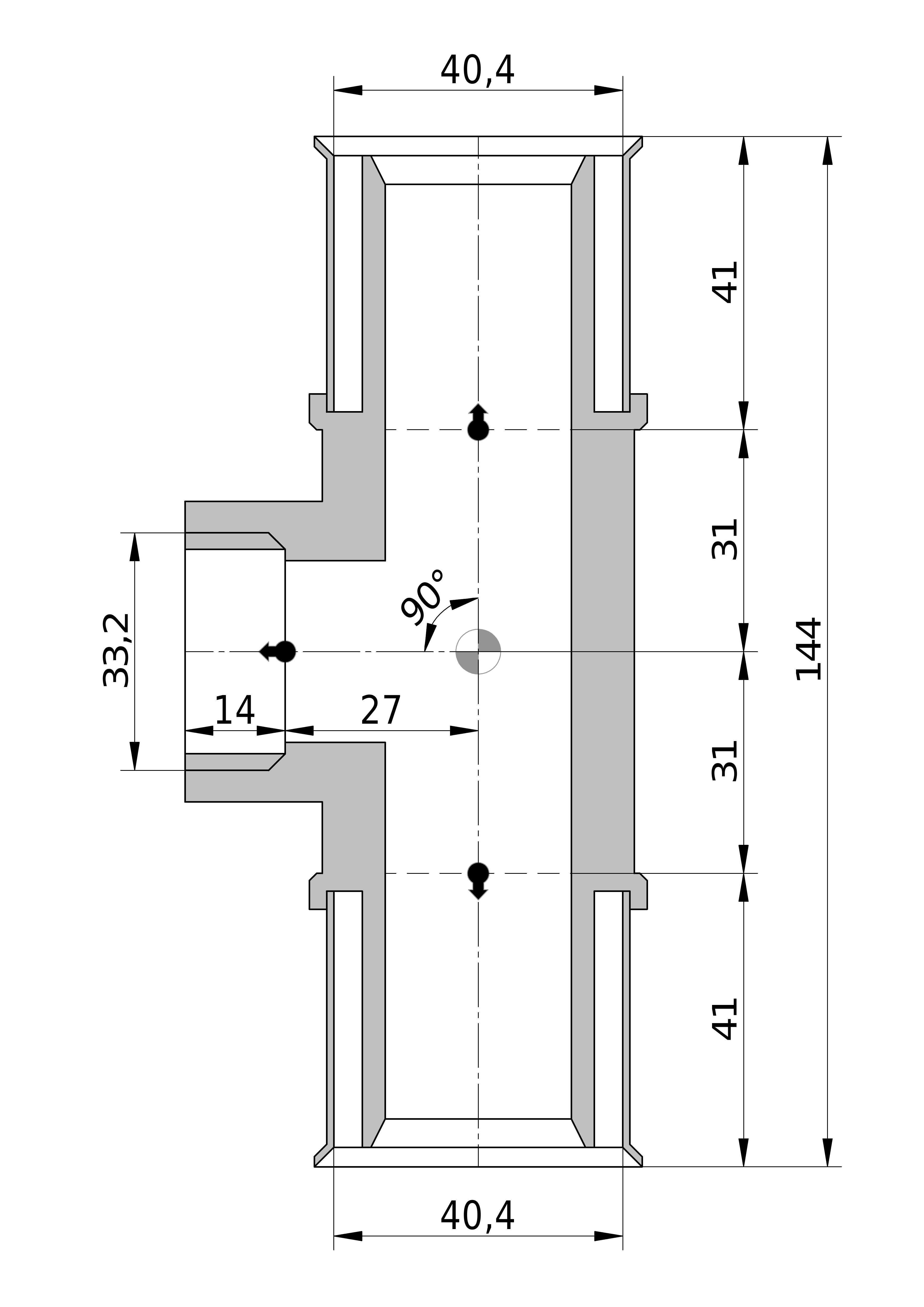 - Uitwendige buisdiameter aansluiting 3: 40 mm