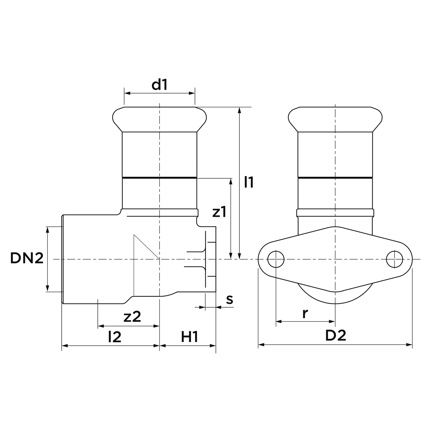 • Uitwendige buisdiameter aansluiting 2: 21,3 mm