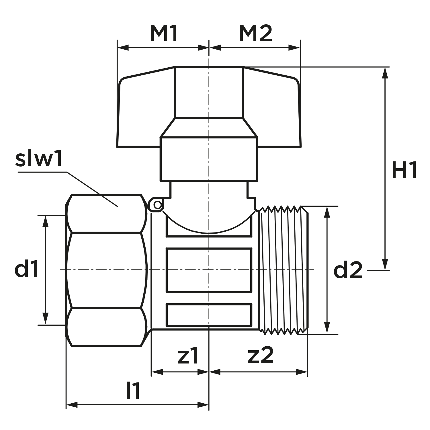 • Nom. diameter aansluiting 1: 1/2" (15)