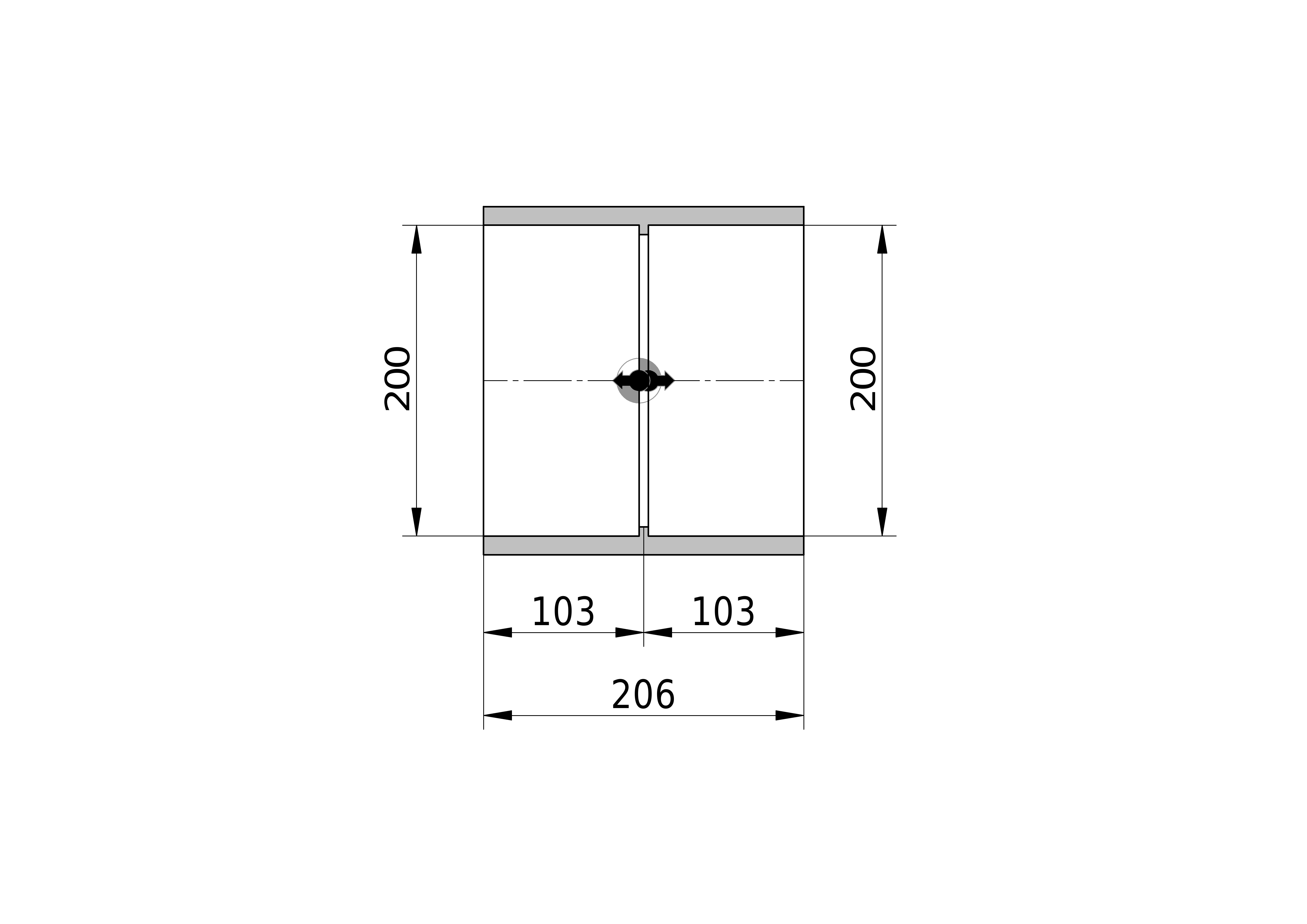 • Uitwendige buisdiameter aansluiting 2: 200 mm