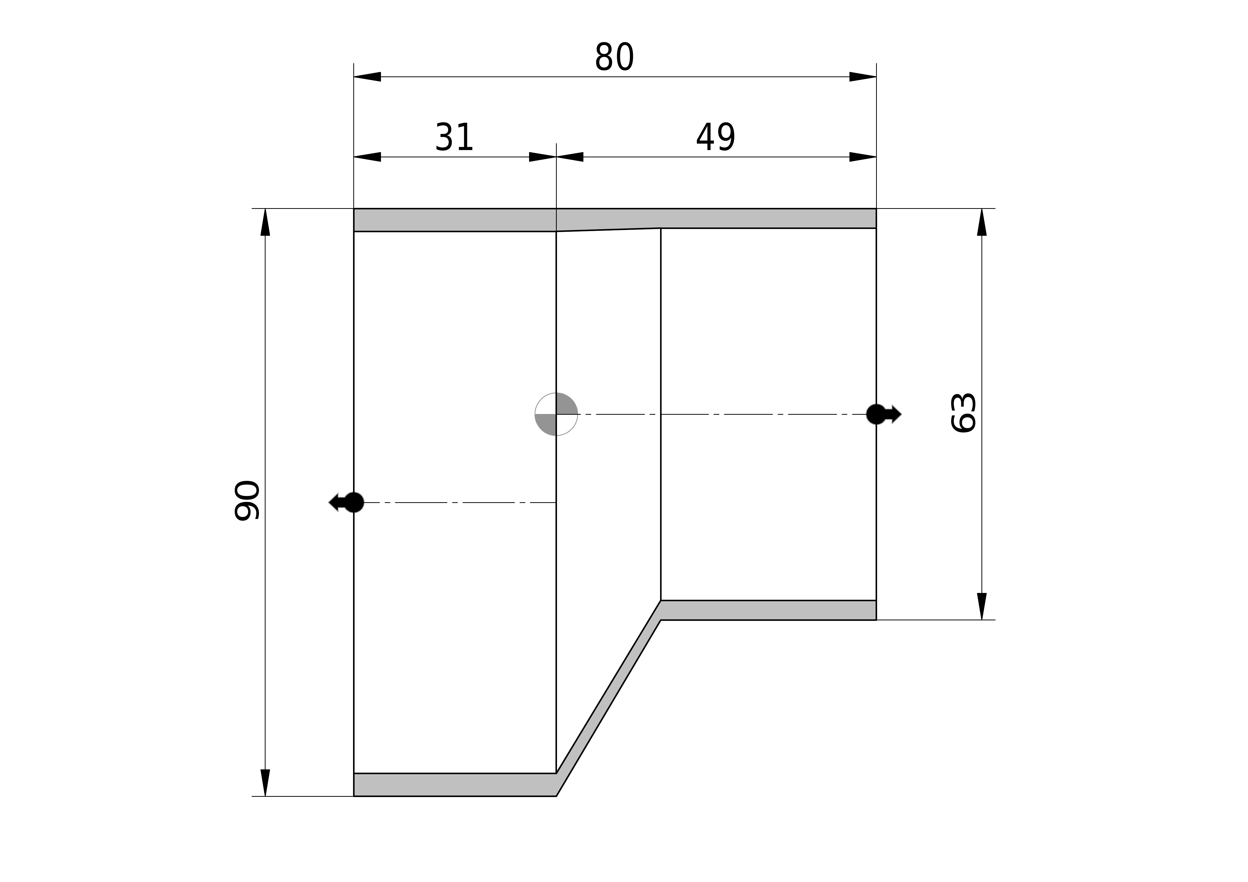 • Lengte aansluiting 2: 49 mm