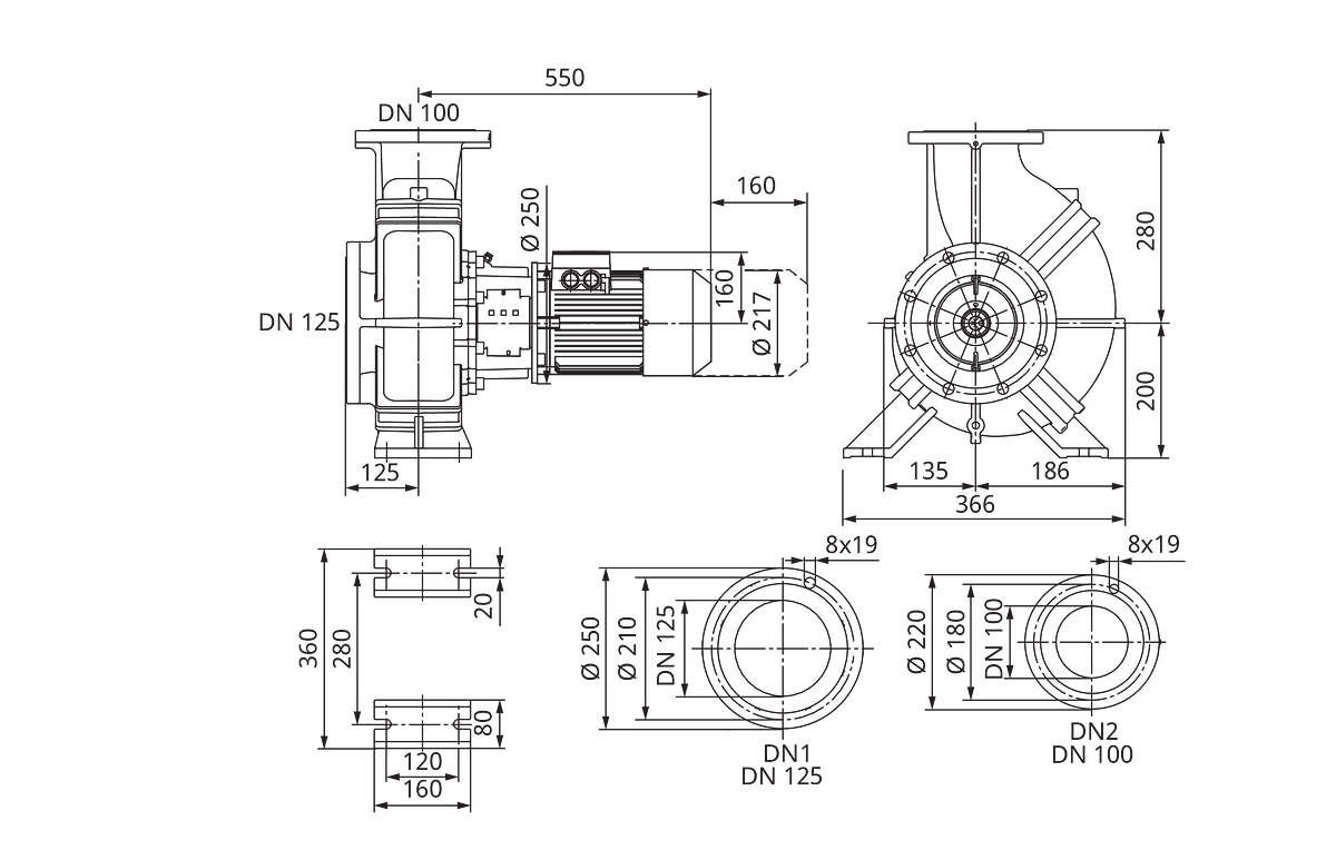 - Druktrap flens aansluiting uitlaatzijde: PN 16