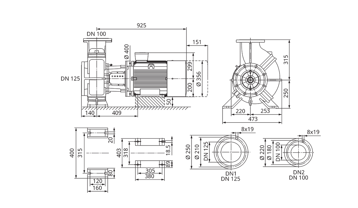 - Nom. diameter aansluiting uitlaatzijde: DN 100