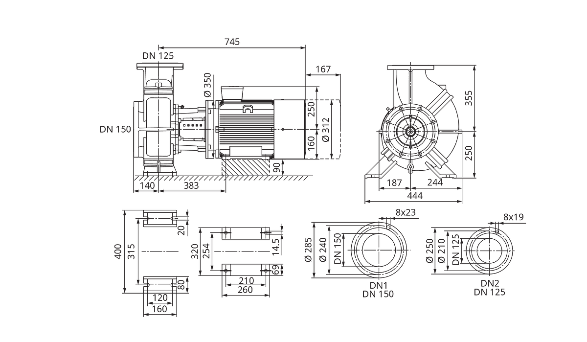- Nom. diameter aansluiting uitlaatzijde: DN 125
