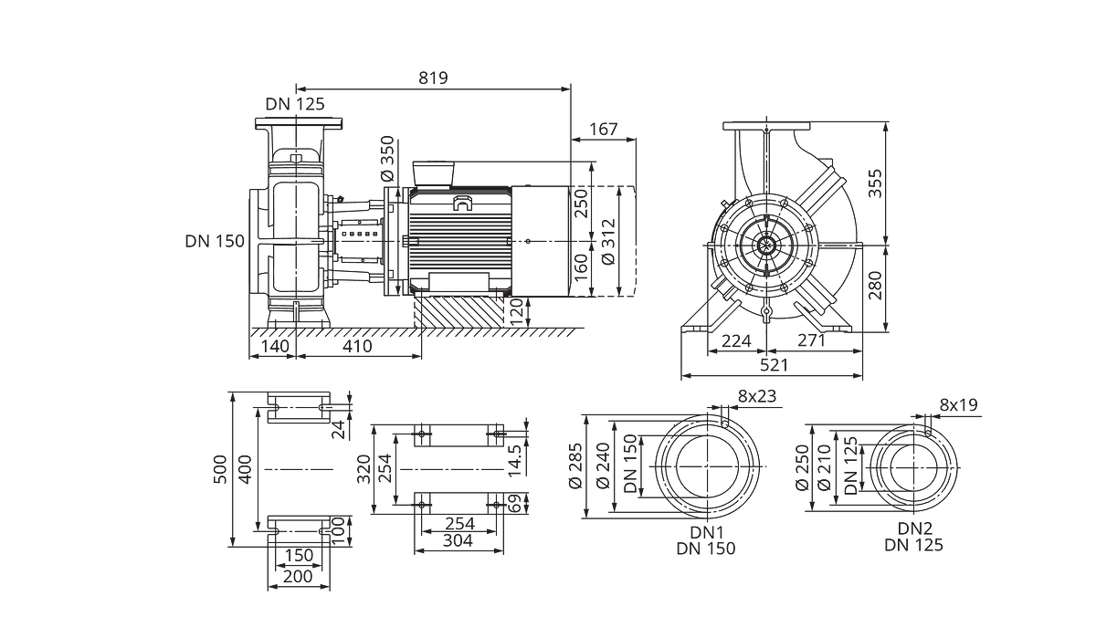 - Nom. diameter aansluiting inlaatzijde: DN 150
