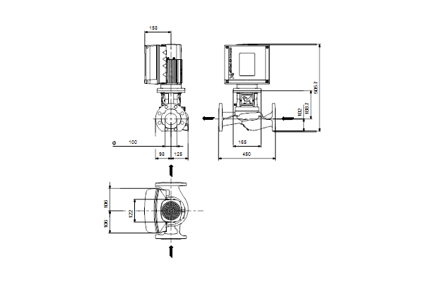 Inlinepomp TPE2 100-120-N-A-F-A-BQQE 1x230V PN16 GRUNDFOS