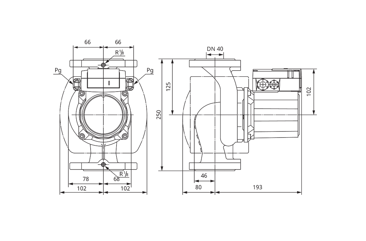- Nom. diameter aansluiting uitlaatzijde: DN 40