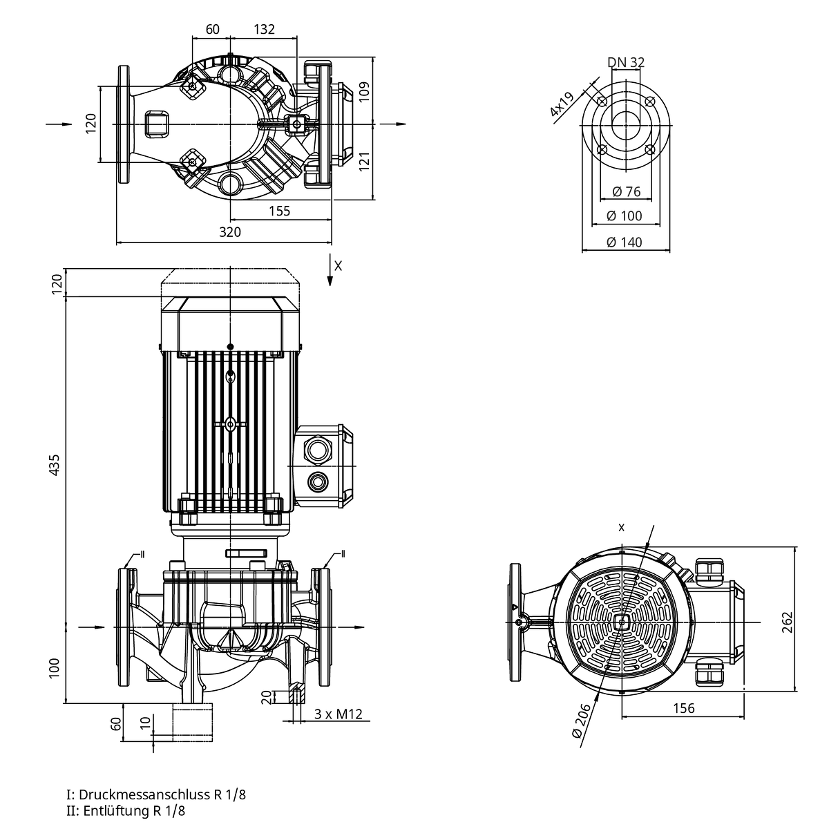 - Nom. diameter aansluiting uitlaatzijde: DN 32