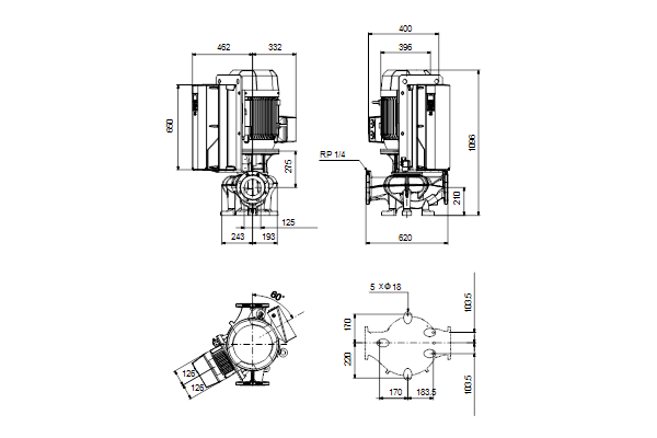 - Nom. diameter aansluiting inlaatzijde: DN 125
