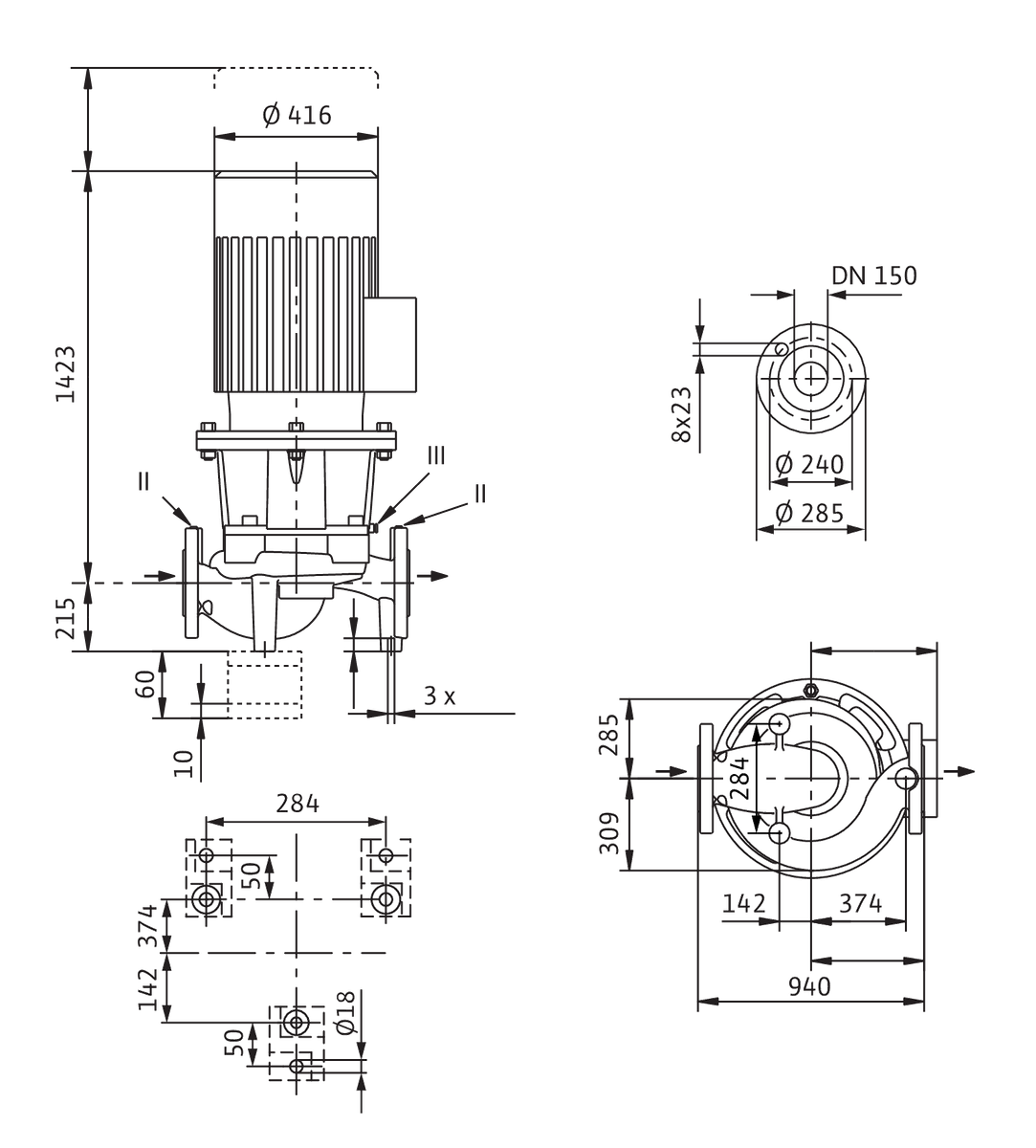 - Nom. diameter aansluiting inlaatzijde: DN 150