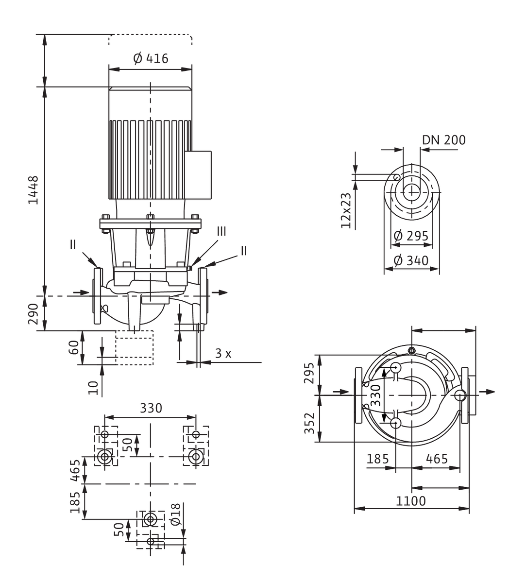 - Nom. diameter aansluiting inlaatzijde: DN 200