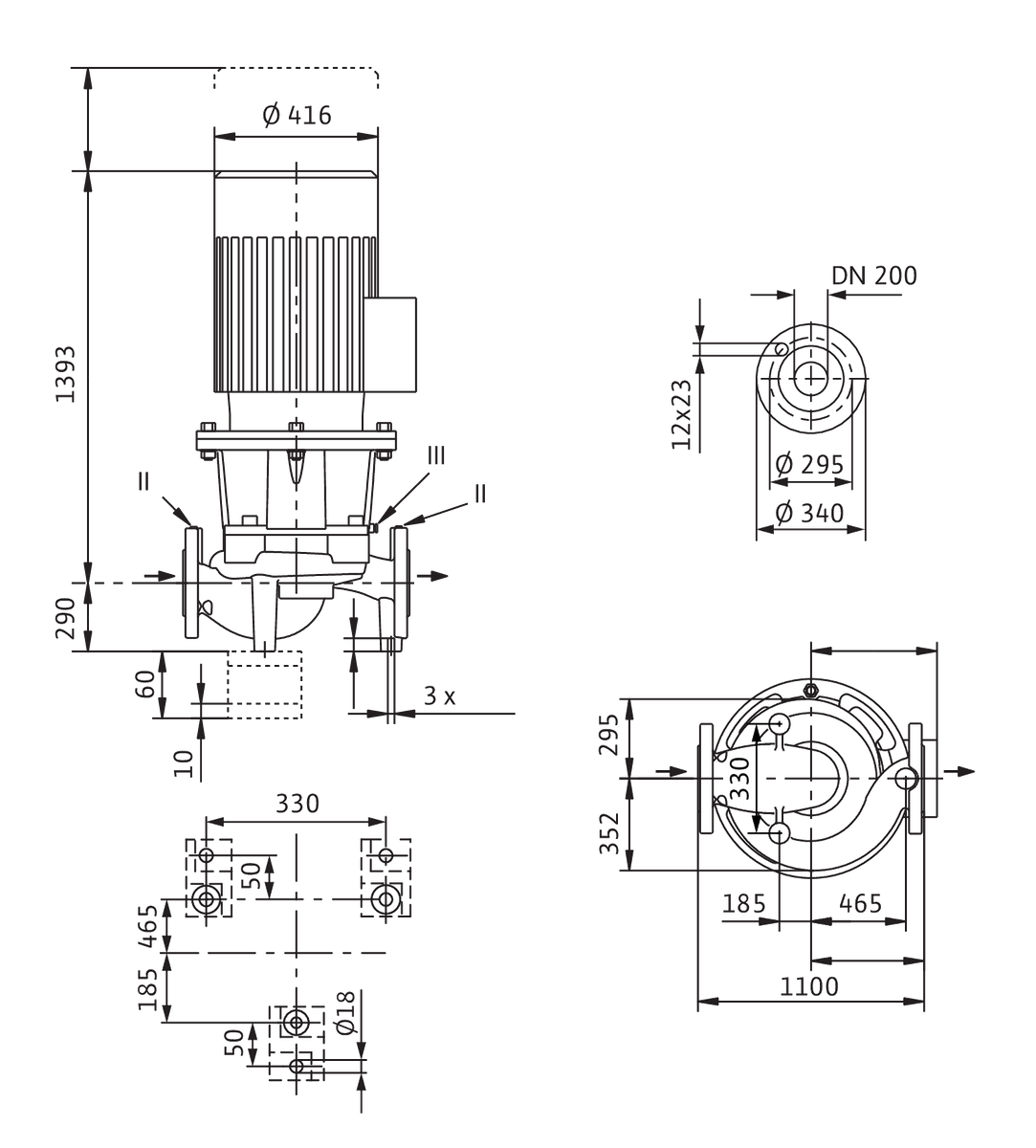 - Nom. diameter aansluiting inlaatzijde: DN 200