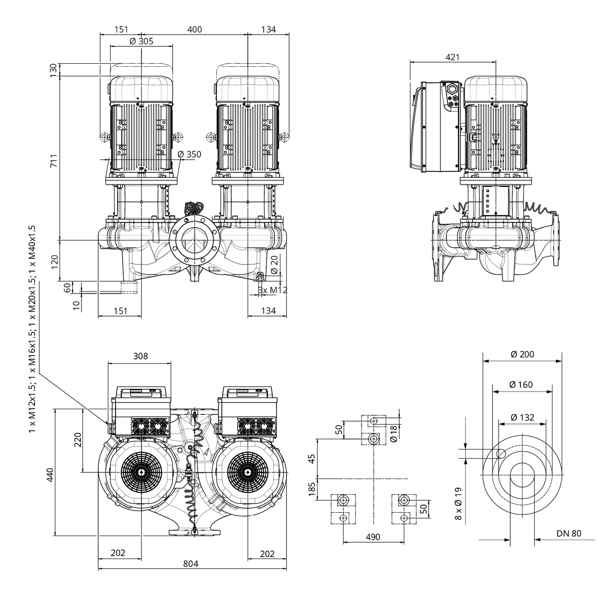 - Nom. diameter aansluiting uitlaatzijde: DN 80