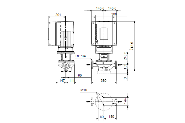 Inlinepomp TPE2 80-310 A-F-A-BQQE-LWB GRUNDFOS