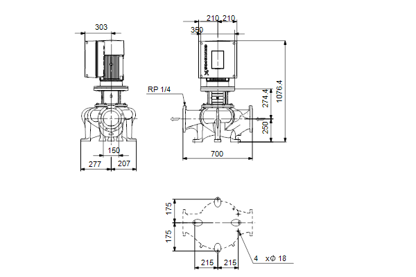 Inlinepomp TPE2 150-270 A-F-A-BQQE-PWA GRUNDFOS