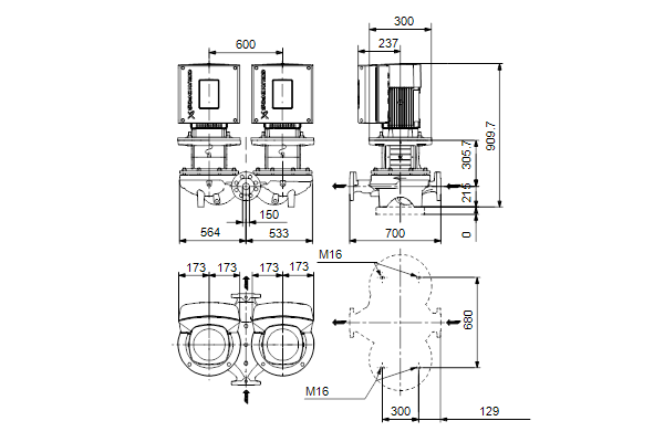 Inlinepomp TPE2 D 150-170 A-F-A-BQQE-MWA GRUNDFOS