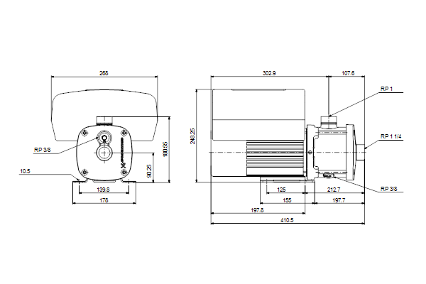 - Aansluiting inlaatzijde: Binnendraad cilindrisch BSPT-Rp (ISO 7-1 / EN 10226-1)