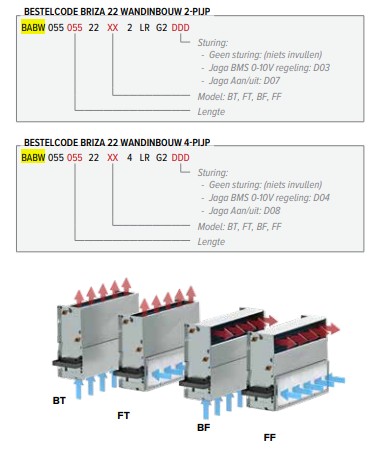 Ventilatorconvector BRIZA 22 wandinbouw 2-pijp H055 L075 22 FF links/rechts met Jaga BMS 0-10V regeling Jaga