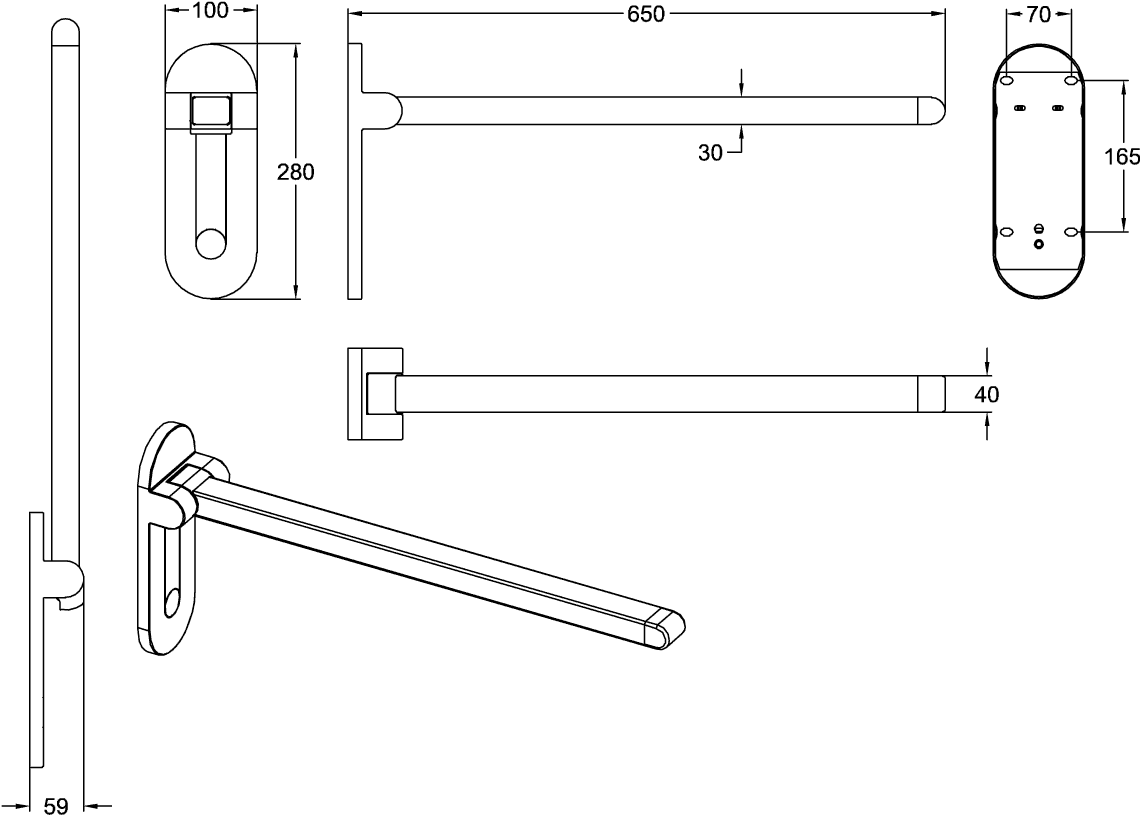 ViCareDESIGN closetbeugel opklapbaar RVS verchroomd 650mm incl. bevestigingsmateriaal Villeroy & Boch
