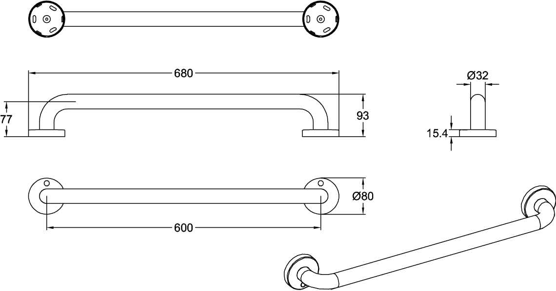 ViCare wandbeugel wit 600mm incl. bevestigingmateriaal Villeroy & Boch