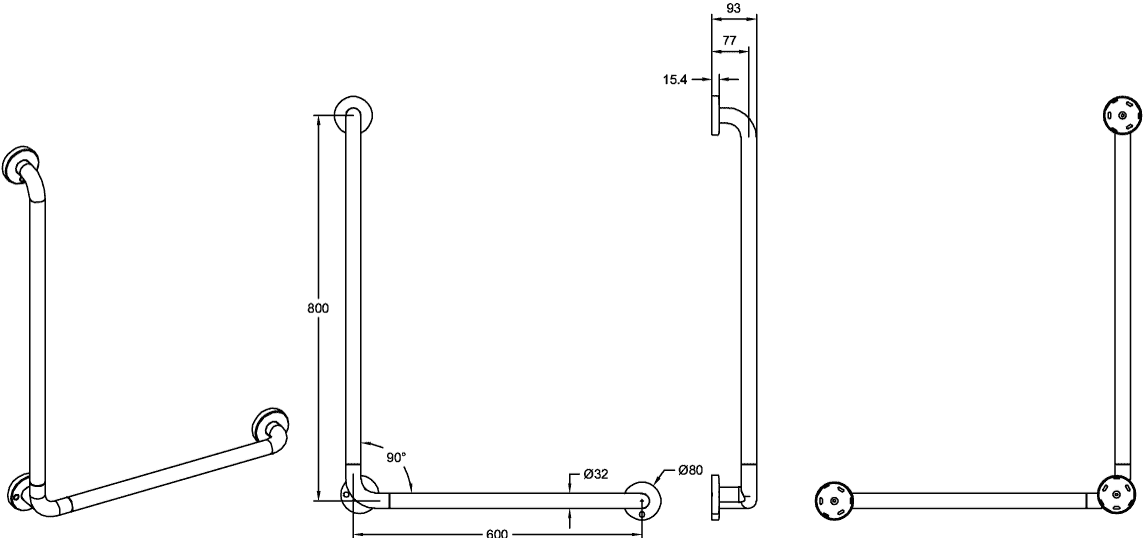 ViCare wandbeugel 90° 800x600mm wit incl. bevestigingsmateriaal Villeroy & Boch