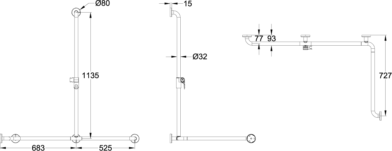ViCare hoekwandbeugel + glijstang wit incl. bevestigingsmateriaal+douchekophouder Villeroy & Boch
