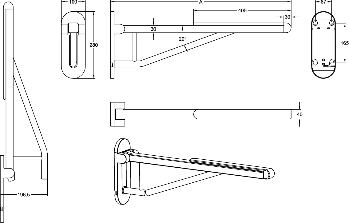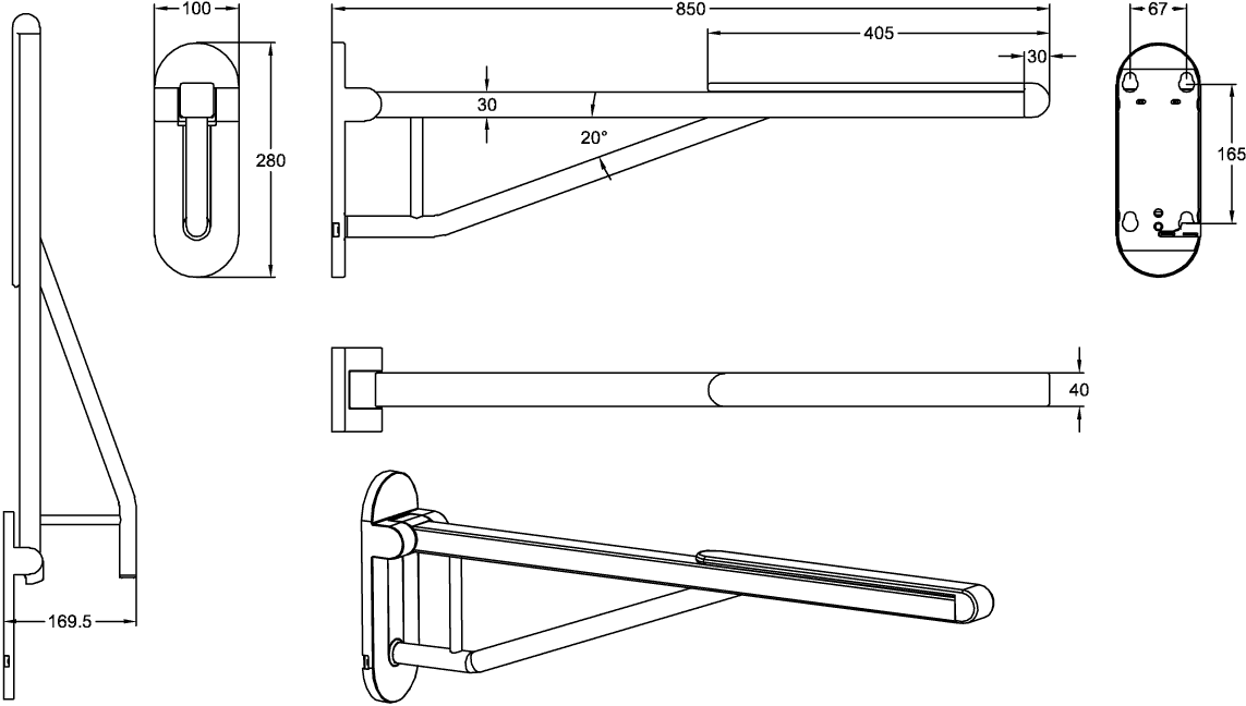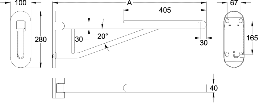 ViCareDESIGN closetbeugel opklapbaar RVS verchroomd/zwart 850mm incl. bevestigingsmateriaal Villeroy & Boch