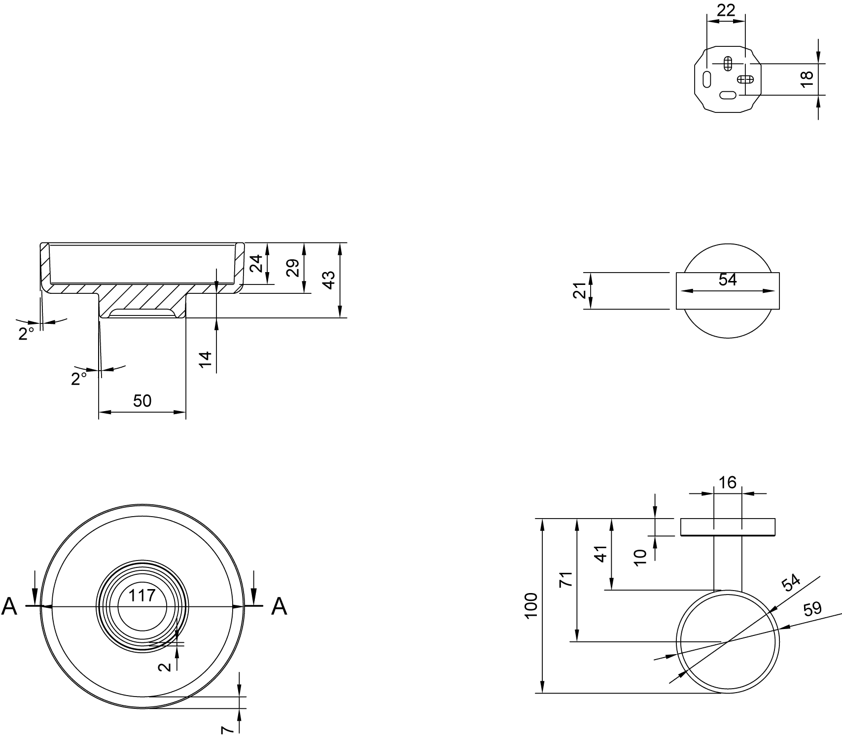 - Diepte: 100 mm