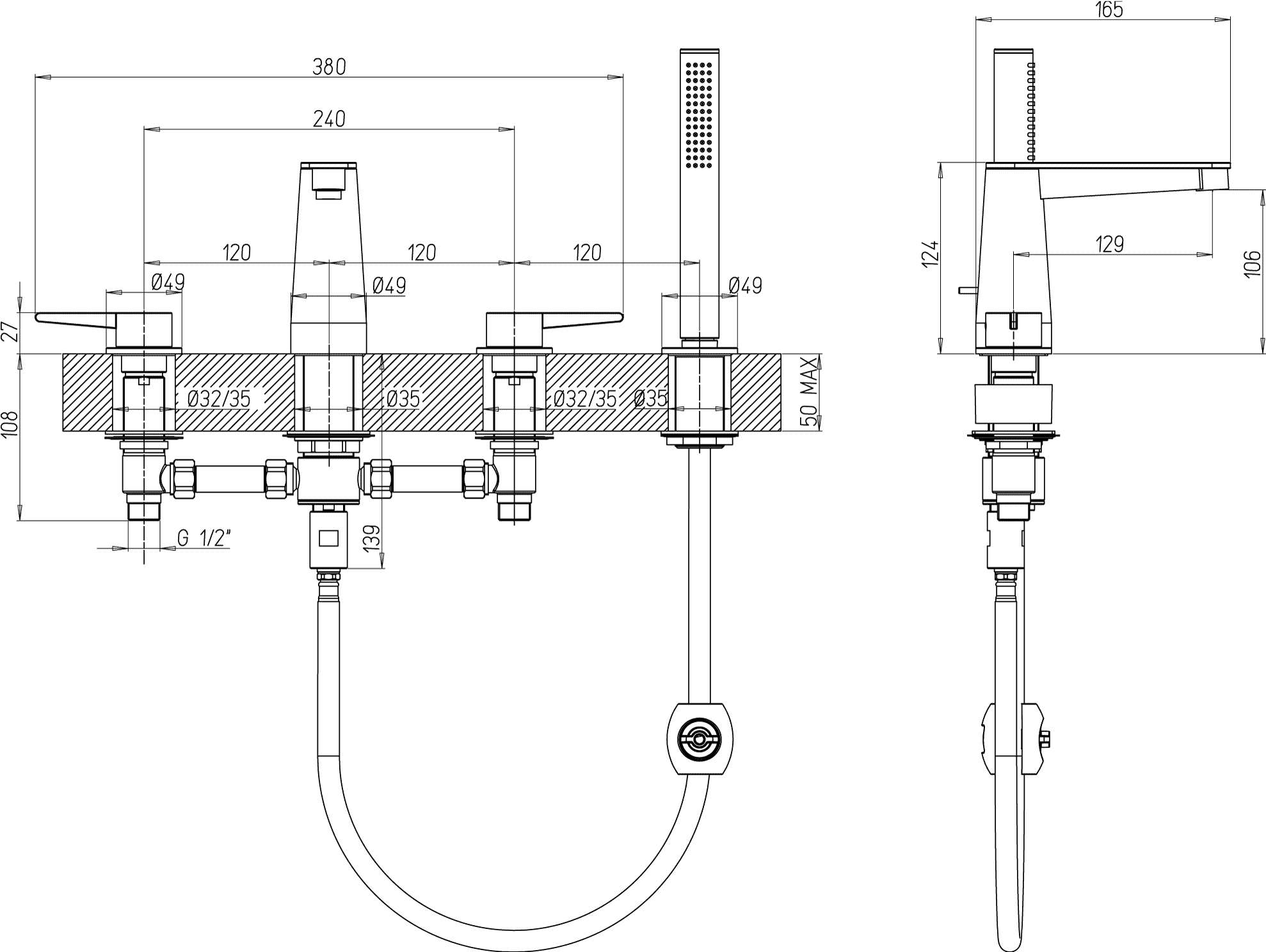 - Met douchegarnituur: Nee