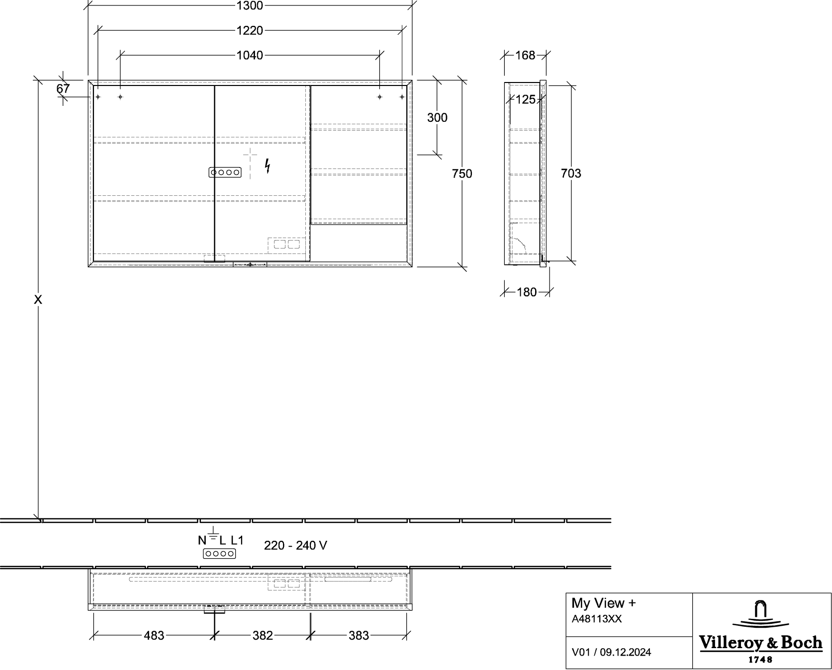 Opbouw Spiegelkast My View+ 1300x750x168mm Arizona Oak Villeroy & Boch