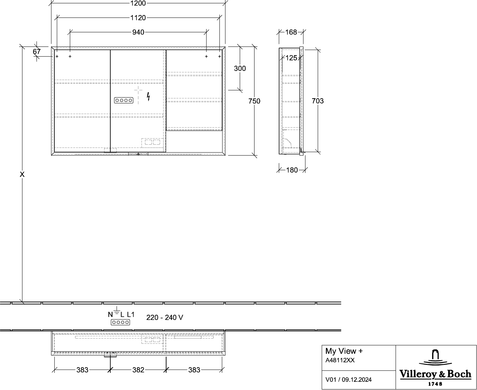 Opbouw Spiegelkast My View+ 1200x750x168mm Arizona Oak Villeroy & Boch