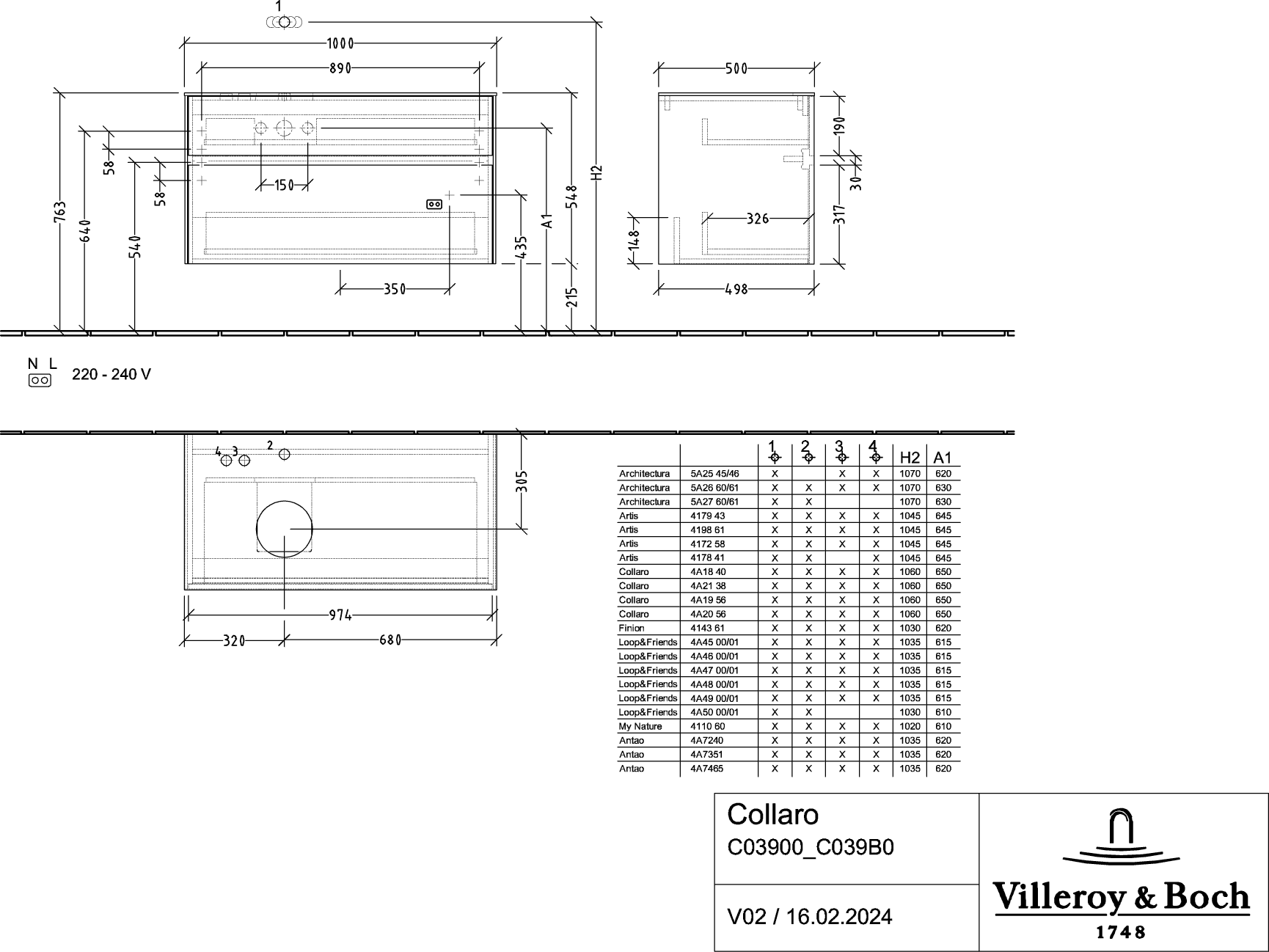 Collaro Wastafelonderkast 1000x548x500mm C03900DH Villeroy & Boch
