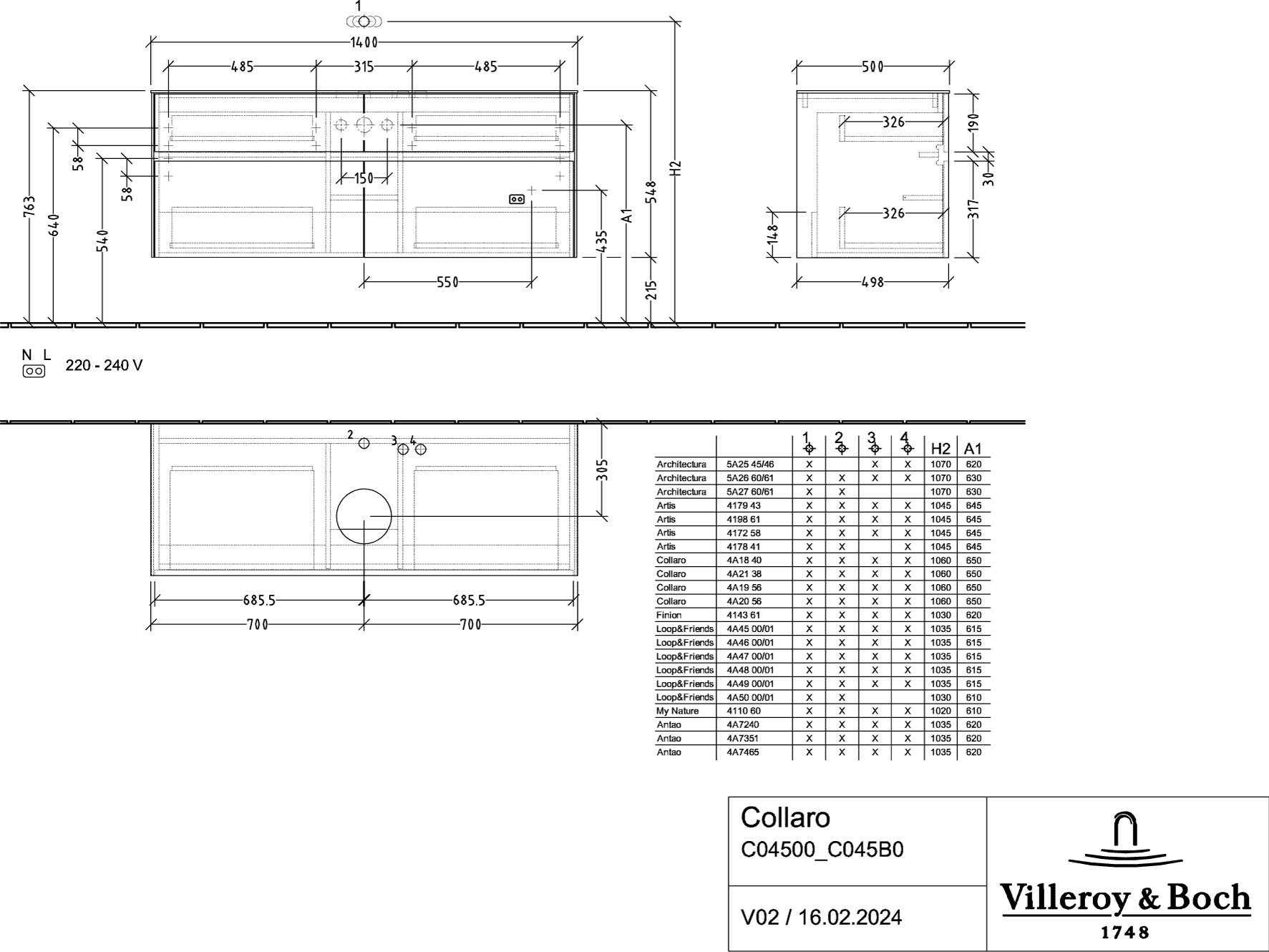 Collaro Wastafelonderkast 1400x548x500mm C04500MS Villeroy & Boch