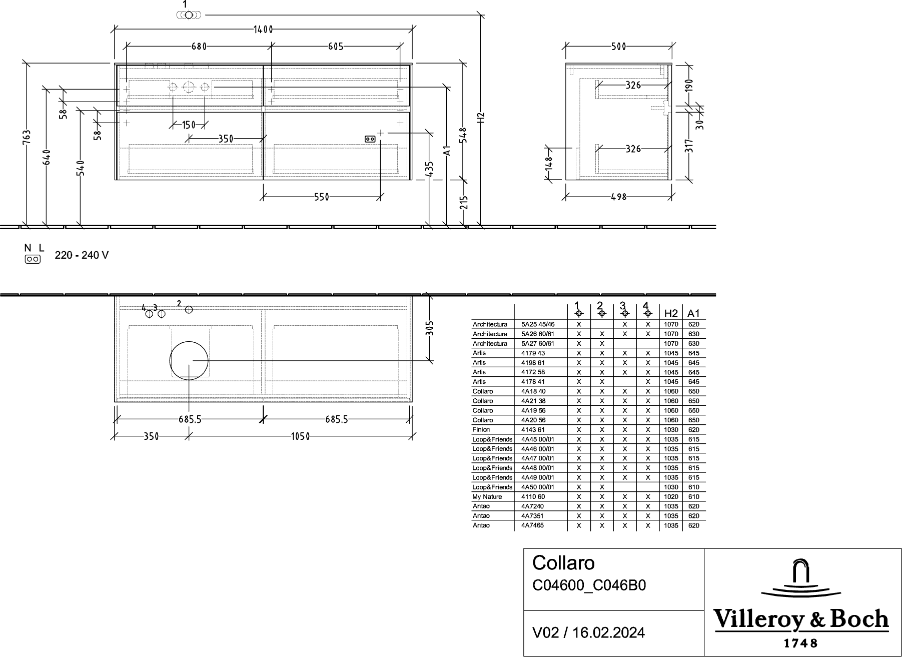 Collaro Wastafelonderkast 1400x548x500mm C04600DH Villeroy & Boch